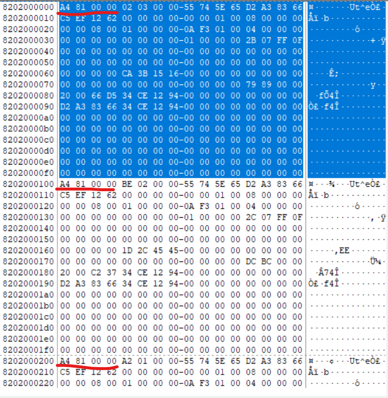 ee_block 값들은 0x8000 단위로 배수로 늘어난다.