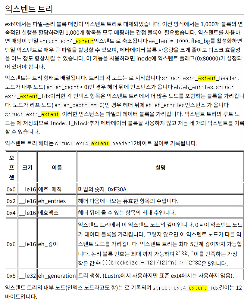 ext4 첫번째 포스팅에서 I-node table에서 Extent 영역 설명에 이 포스팅 링크 걸어놓기!